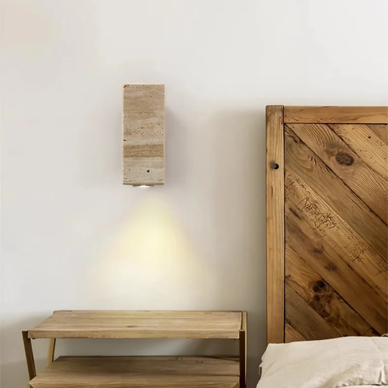 Travertine Stone LED Wall Lamp for Home Decor Living Room Bedside Stair Corridor Hotel Wabi Sabi Decor Bedside Lamp
