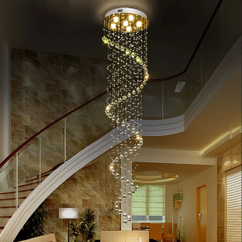 Zea Lighting Hotel Hanging Lamp Stairs Villa Modern Luxury Raindrop Long Spiral K9 Crystal Chandelier