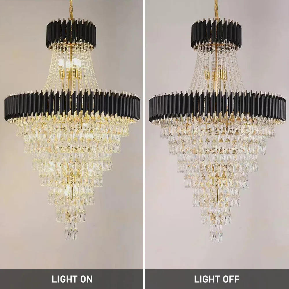 Custom Large Hanging Luxury LED Modern K9 Crystal Chandeliers Decorative Hotel Foyer Staircase Ceiling Lights Long for Stylish