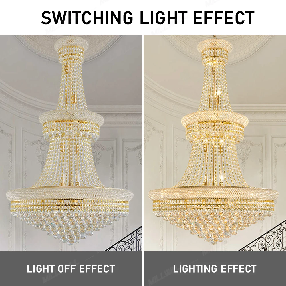 Zeal Lighting Hotel Lobby Hall Decorative Large Hanging Light Customized Long Gold Crystal Elegant Chandelier