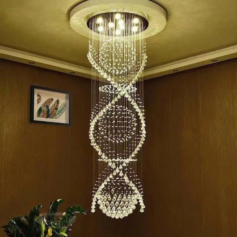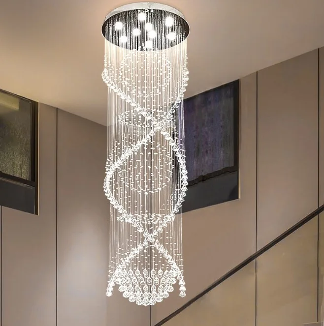 Hotel Hanging Crystal Beads Lamp Stairs Villa Modern Luxury Raindrop Long Spiral K9 Crystal Chandelier