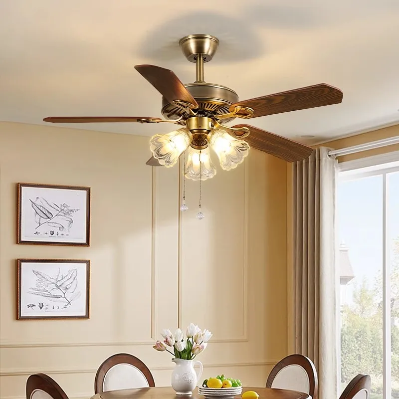 Factory Hot Sell Dropshipping Wooden Remote 5 Blades Ceiling Fan Ceiling Fan Residential With Light