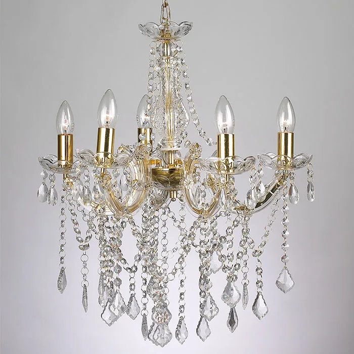 5 Lights Gold Acrylic Droplets Brass Marie Therese Crystal Lamps Art Deco Chandelier Pendant Lights