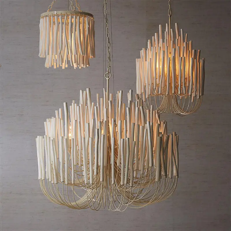 Wabi-Sabi Handcrafted Tassel Macrame Woven Pendant Light Twine Braid Rattan Led Rattan Chandelier