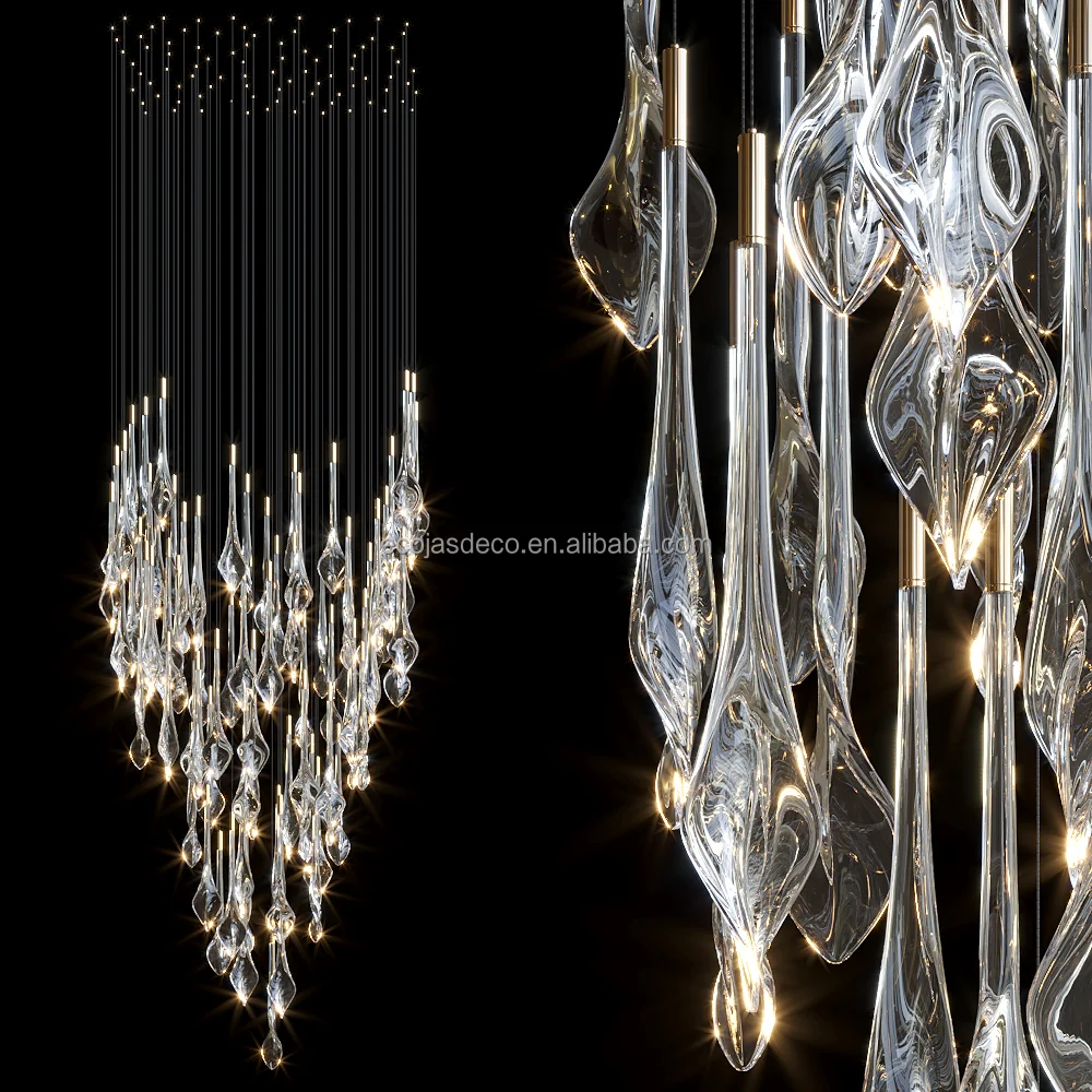 Ecojas Showroom Wholesale Glass Luxury Modern Hotel Lobby Villa Decoration Pendant Light Led Crystal Chandeliers
