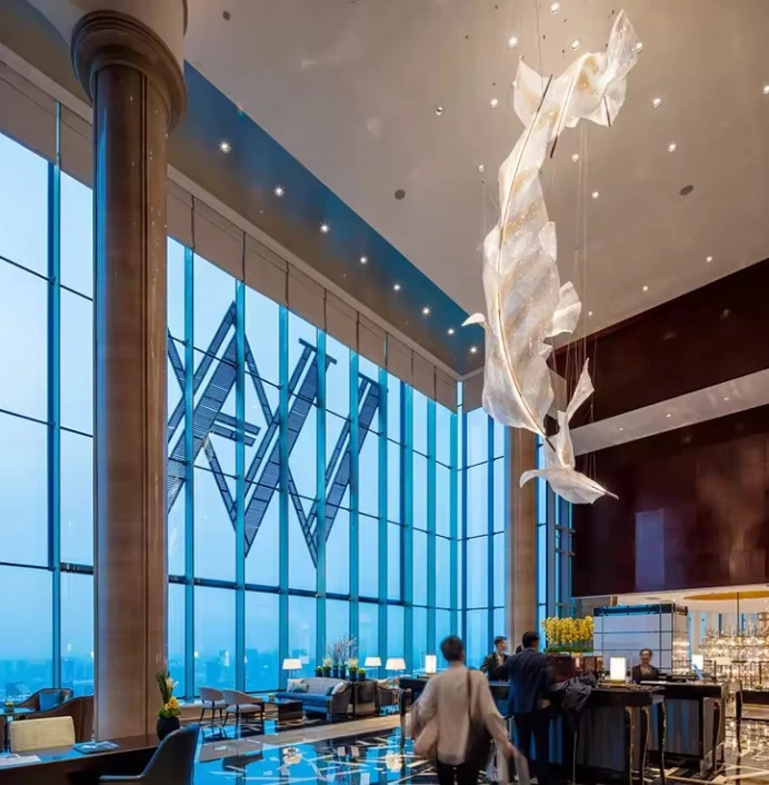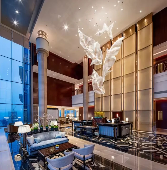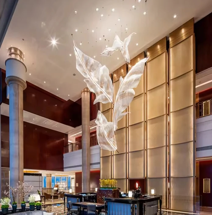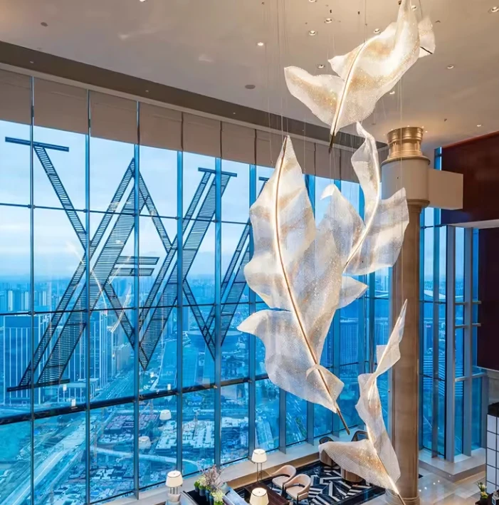 New Design Ceiling Rise Hotel Leaf Luxury Leafiness Crystal Contemporary Chandelier Light