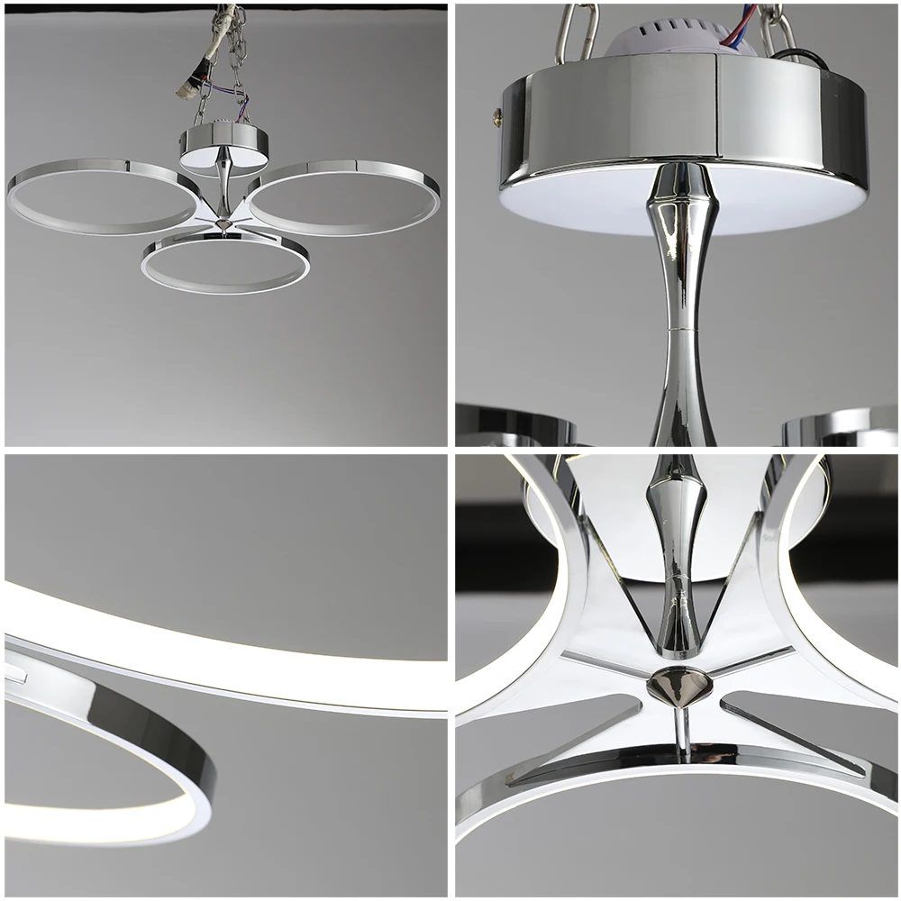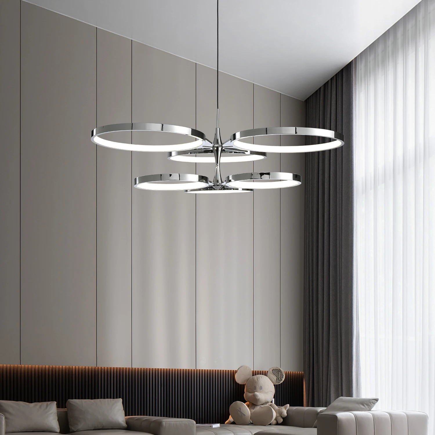 Modern Chrome LED Rings Circles Chandelier Decorating the Living Room Large Chandeliers Pendant Lights for High Ceilings