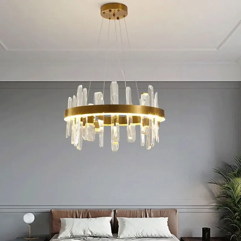 Modern Luxury Crystal Pendant Light Indoor Lighting Adjustable Height Feature Indoor Decoration Lustre De Cristal Chandelier