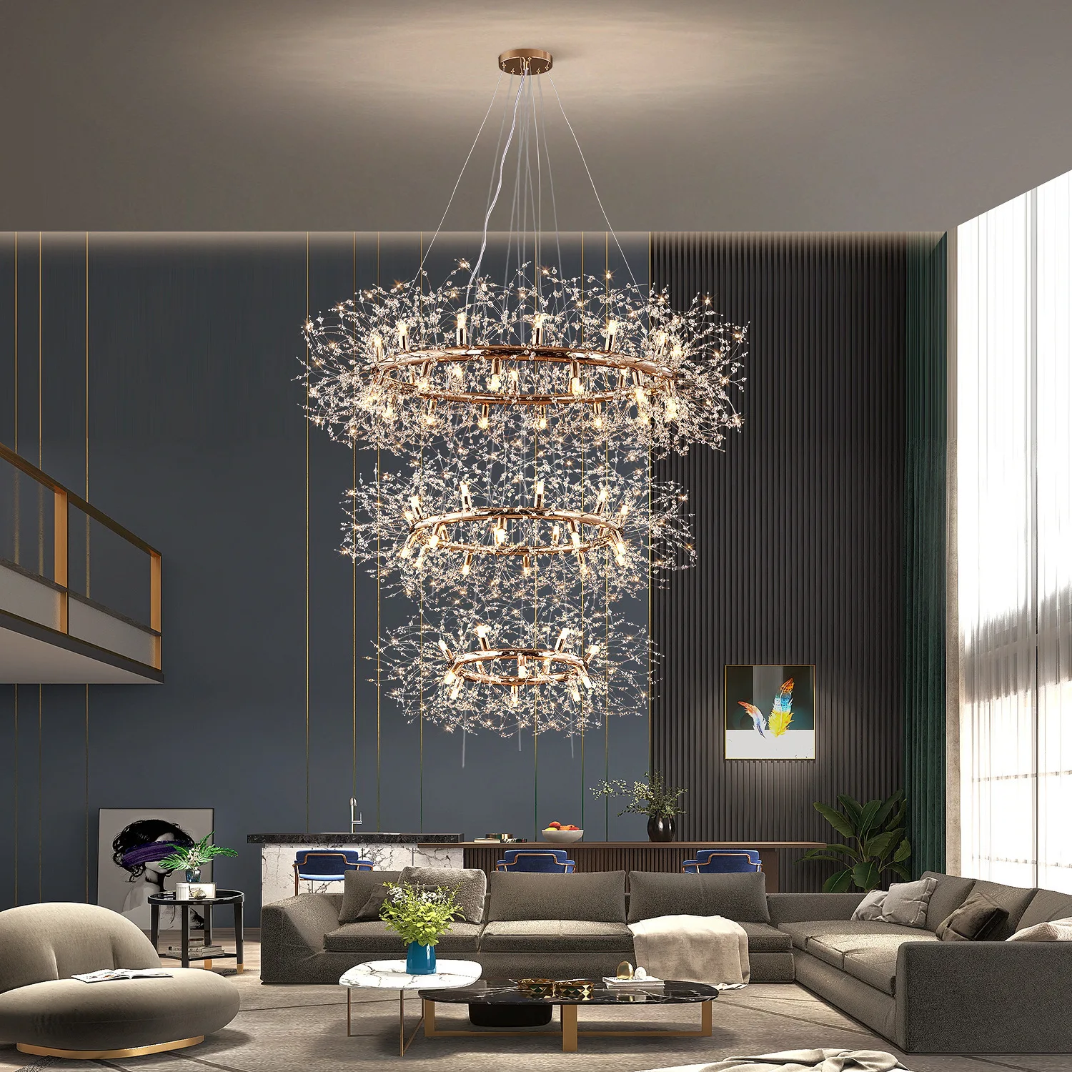 Zeal Lighting Long Stairwell Hanging Pendant Light Staircase Villa Duplex Stair High Ceiling Crystal Chandelier