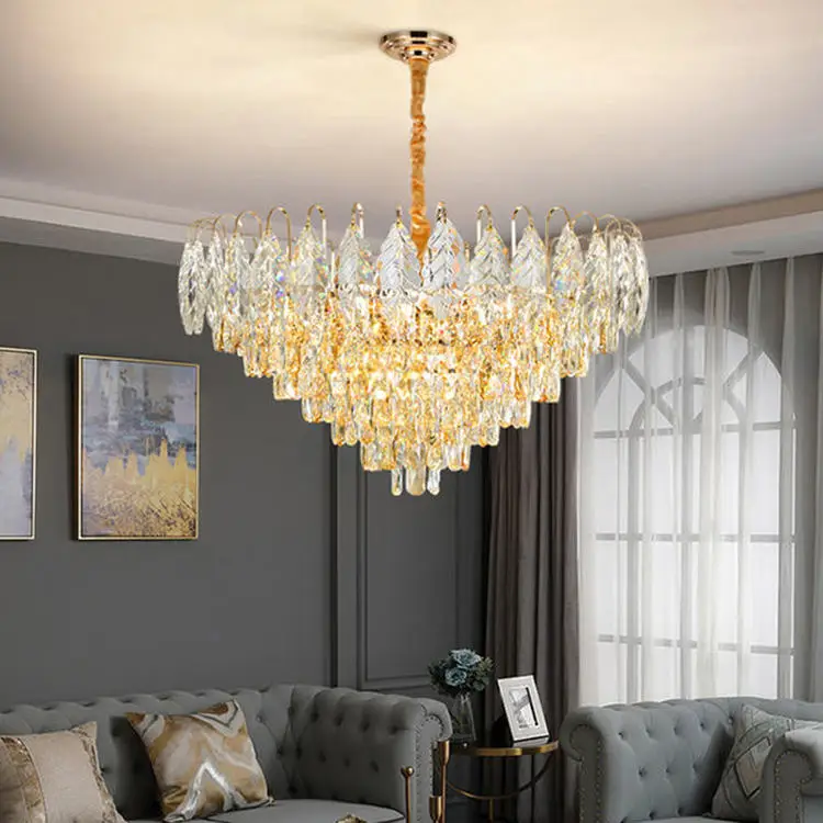 Luxury Crystal Leaf Hanging Light Luxury Gold Iron Leaves K9 Crystal Chandeliers Lighting