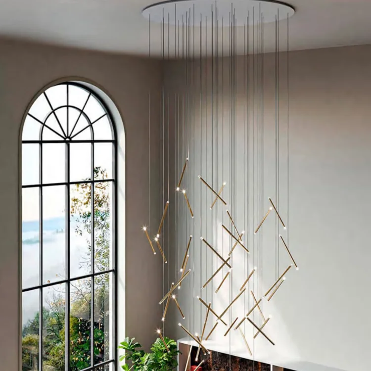 ECOJAS Creative Design Fashion High-end Chandelier Dining Room Bedroom Light Luxury Metal Tube Inclined Chandelier