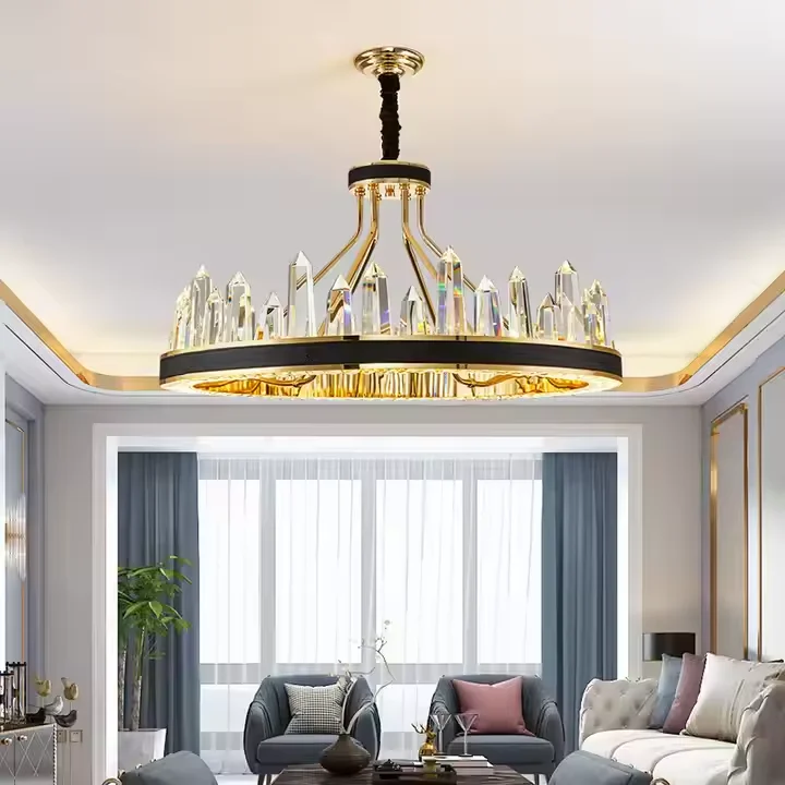 Modern Round Pendant Lights Living Room Modern Gold Black Chandeliers with Crystal
