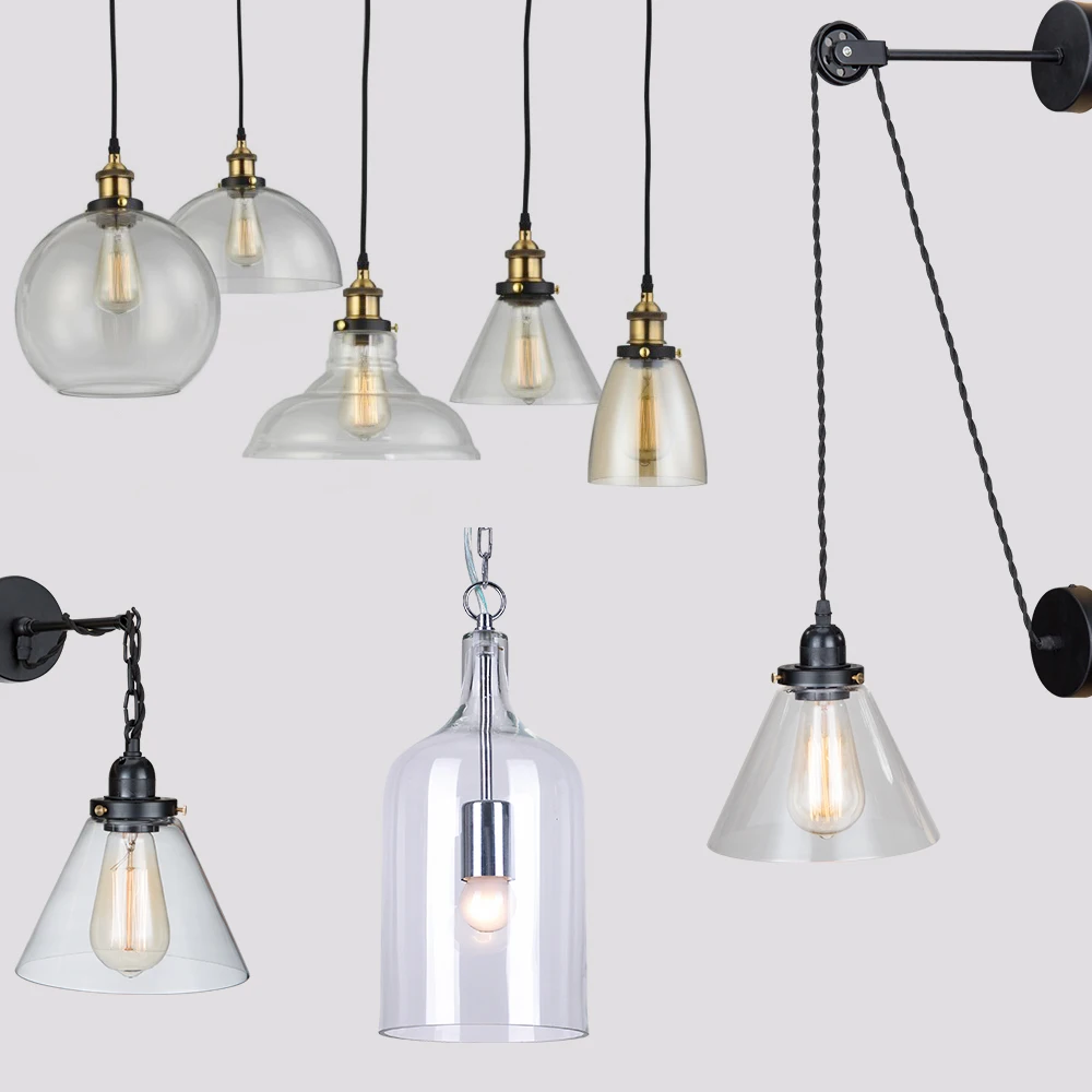 Retro Industrial Globe Loft Cafe Round Glass Ceiling Pendant Light Lamp Shade