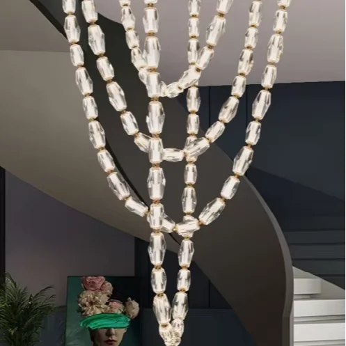 Zeal Lighting Long Stairwell Hanging Pendant Light Staircase Villa Duplex Stair High Ceiling Crystal Chandelier