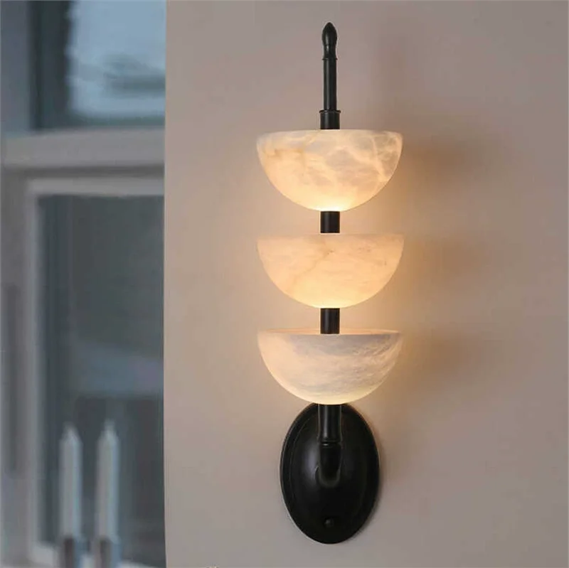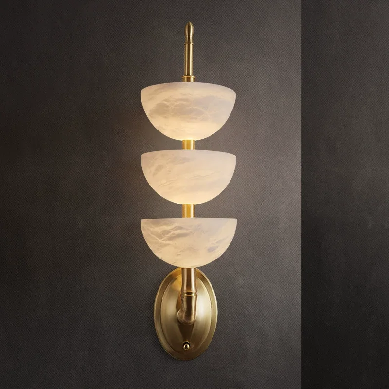 Spanish Marble Copper Wall Lamp Nordic Modern Light Luxury Restaurant Bedroom Bedside French Living Room Background Wall Lamp