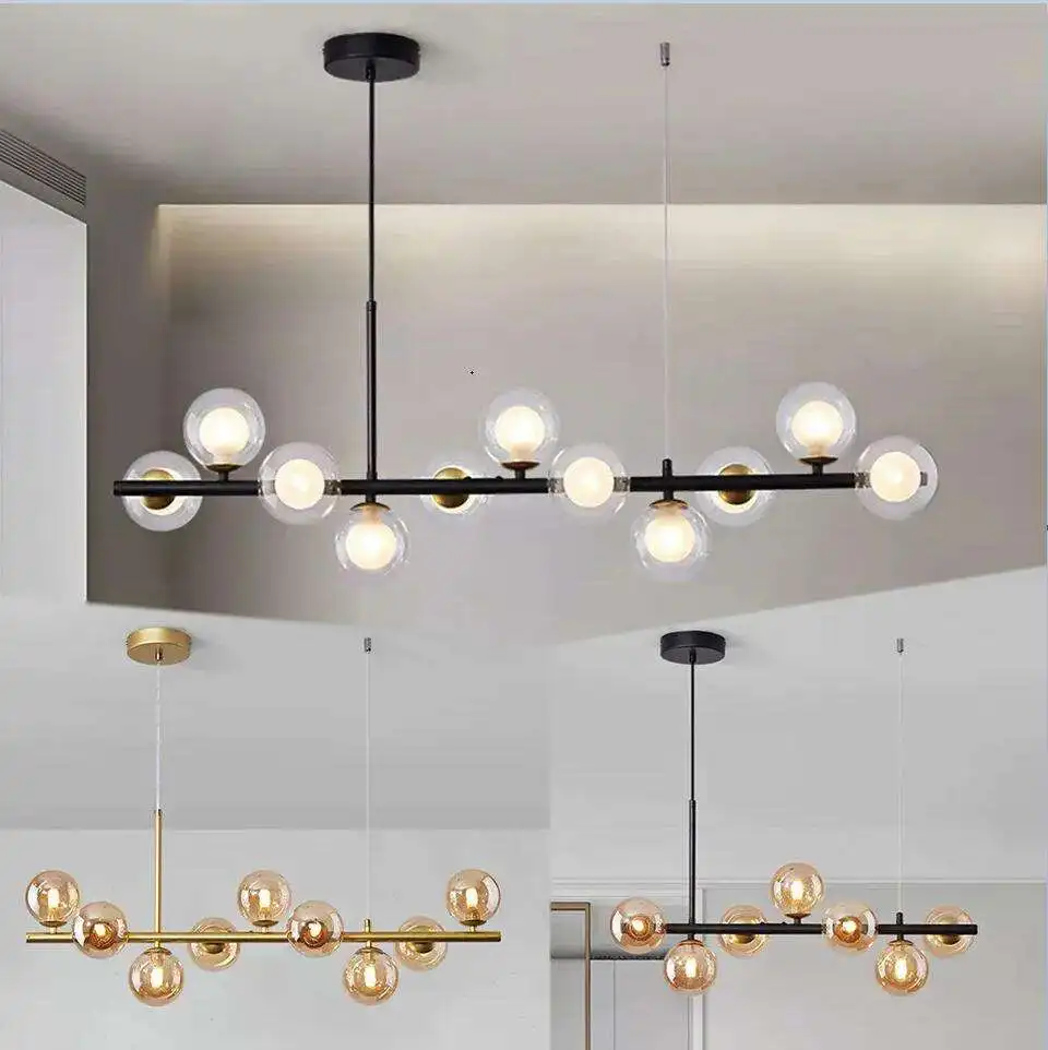 Nordic Style Dining Room Long Strip Gold Creative Glass Ball Chandelier Pendant Lights for Living Room