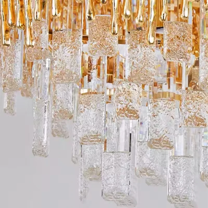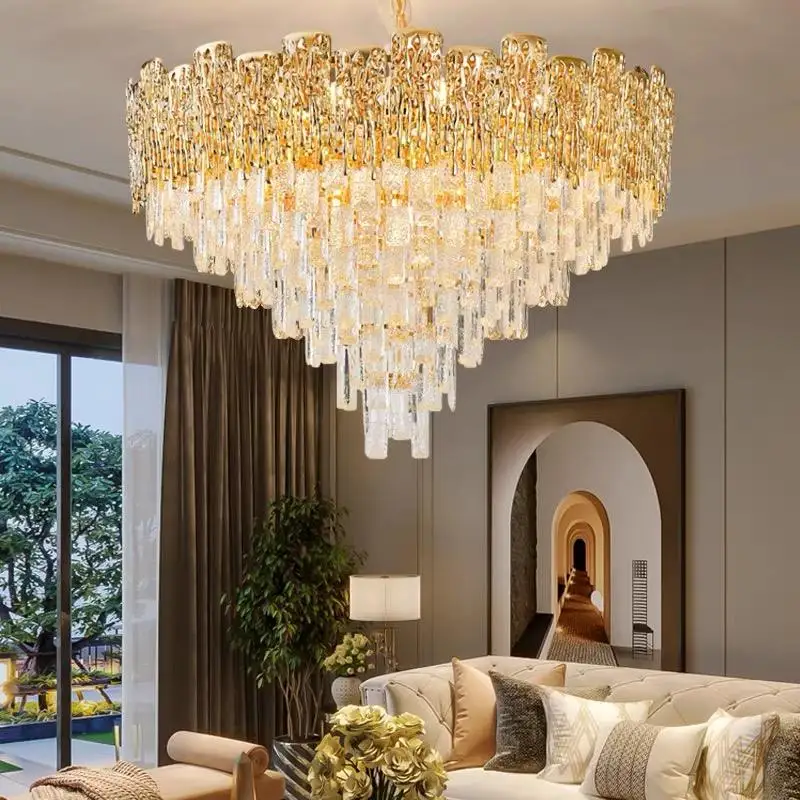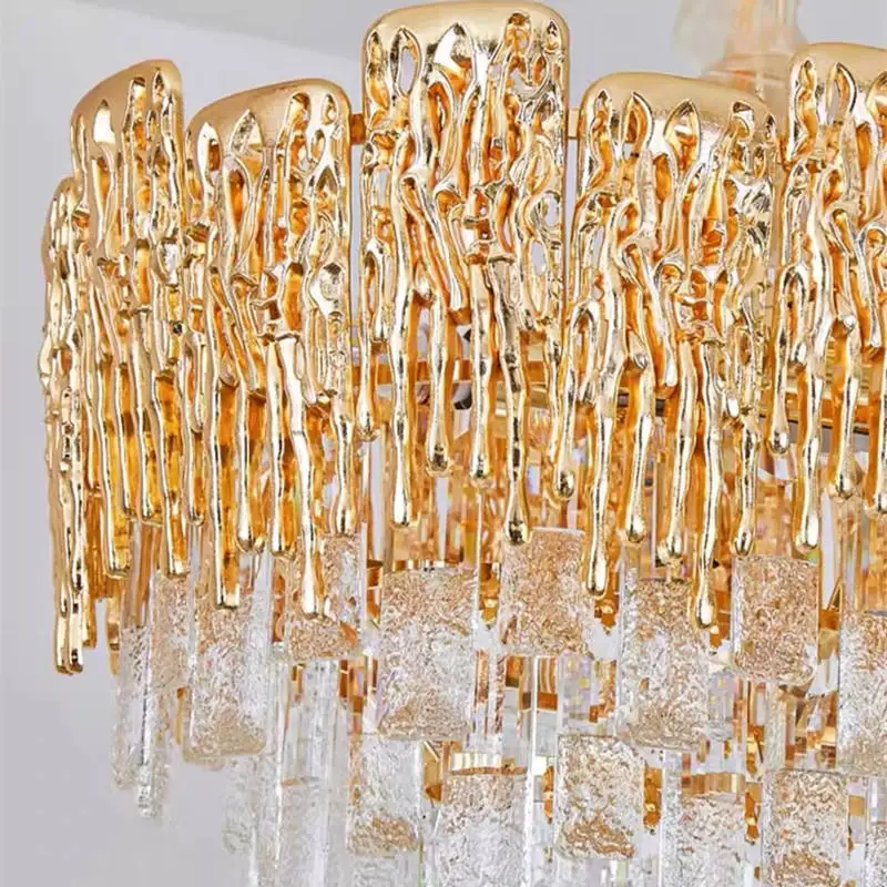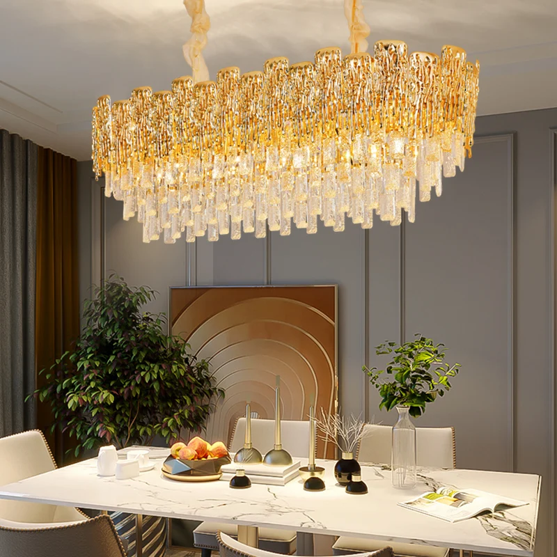Luxury Rectangular Round High Ceiling Lamp Brushed Gold Luxury K9 Crystal Chandelier Pendant Light