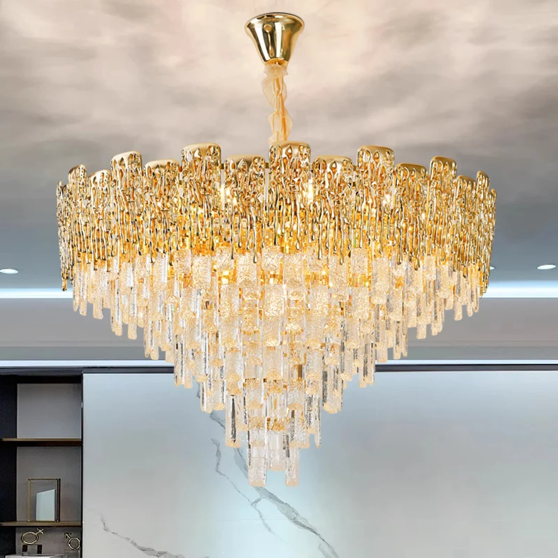 Zeal Lighting Hotel Lobby Hall Decorative Large Hanging Light Customized Long Gold Crystal Elegant Chandelier