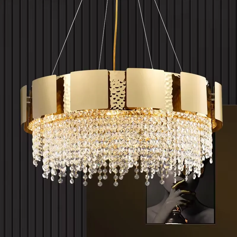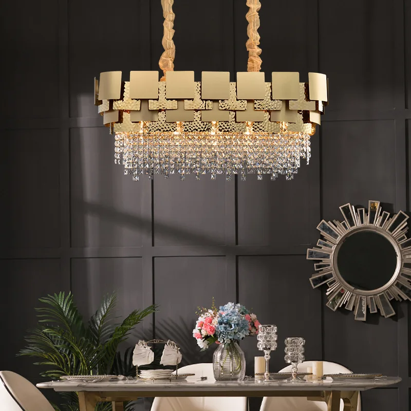Zeal Lighting Modern Gold Rectangle Round Lobby Led K9 Crystal Beads Chandelier in Ceilings