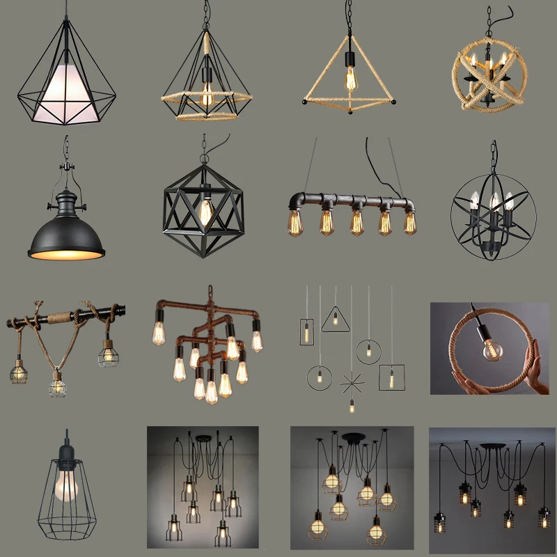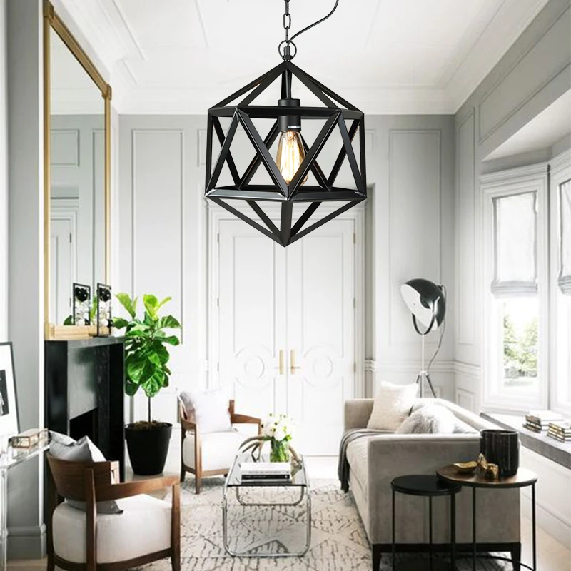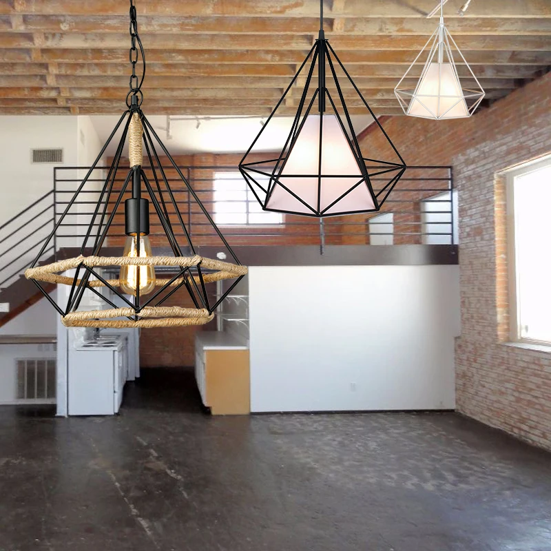 Industrial Lamp Black Cage Wire Rope Pendant Light Home/restaurant/kitchen/shop,home Office Iron Energy Saving Dia 39 * H:37 Cm