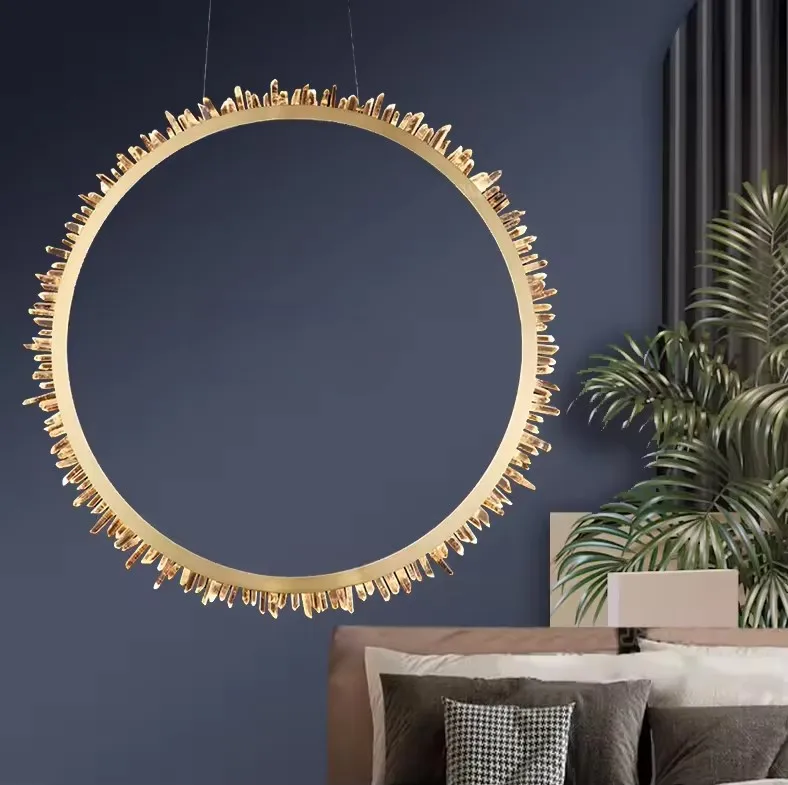 Modern Minimalist Style Circular Crystal Chandelier Living Room Dining Room Decorative LED Pendant Light