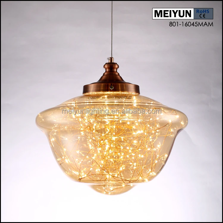 Starry Sky Led Pendant Light Fixtures Amber Bulb Glass Shade Hanging Modern Lighting