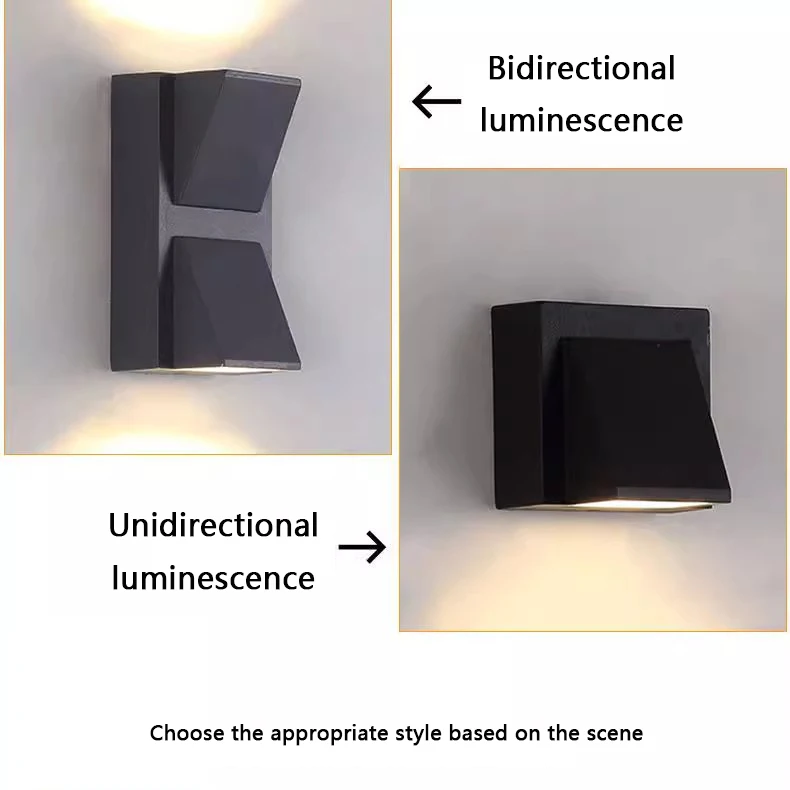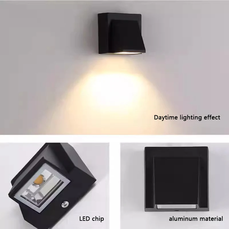 Modern LED Black Wall Lamp Light Waterproof Square Aluminum Base with Polycarbonate Diffuser for Garden Use