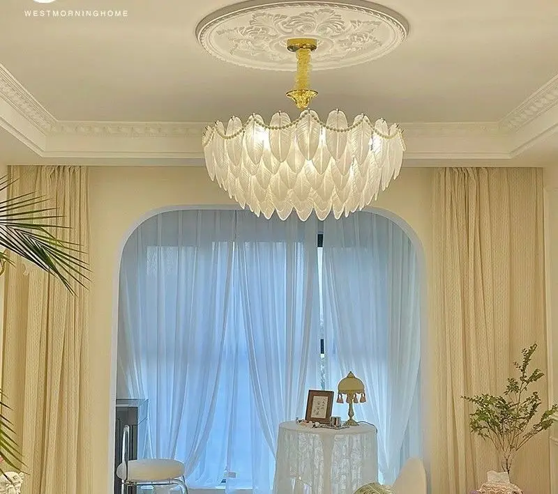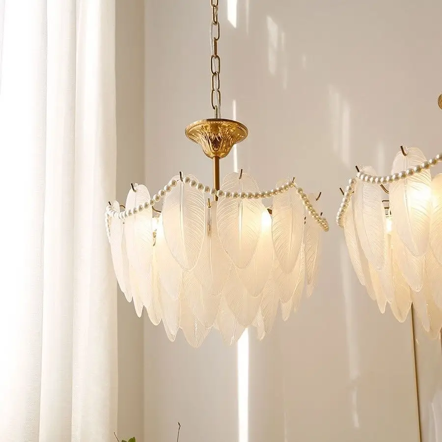 Zeal Lighting High Quality Home Decor Dinner Room Simple Feather White Glass Nordic Pendant Light