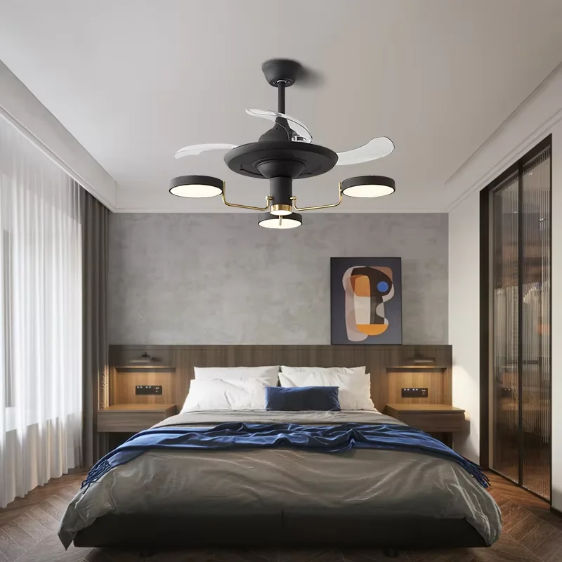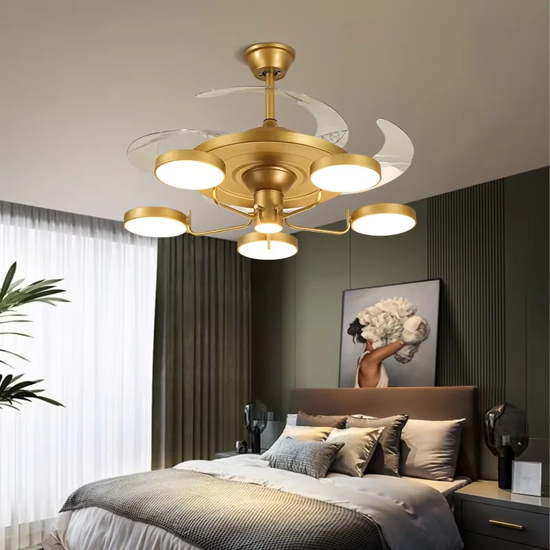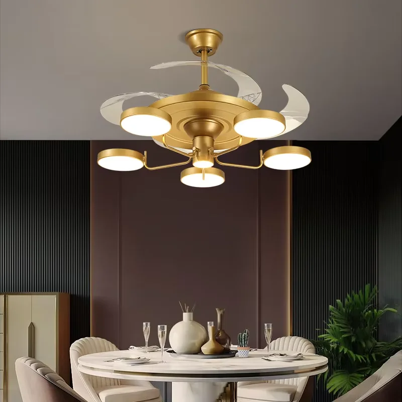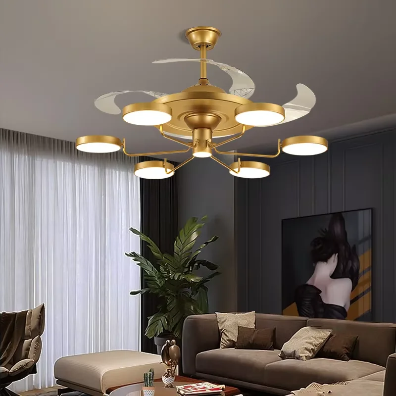 Nordic Chandelier with Fan Restaurant Chandelier Living Room Light Luxury Invisible Fan Lamp