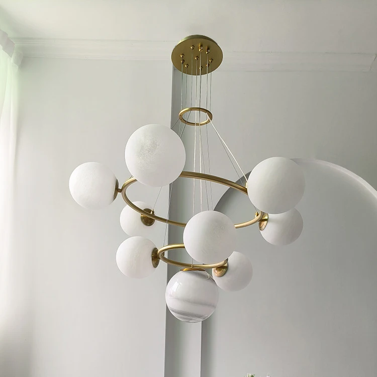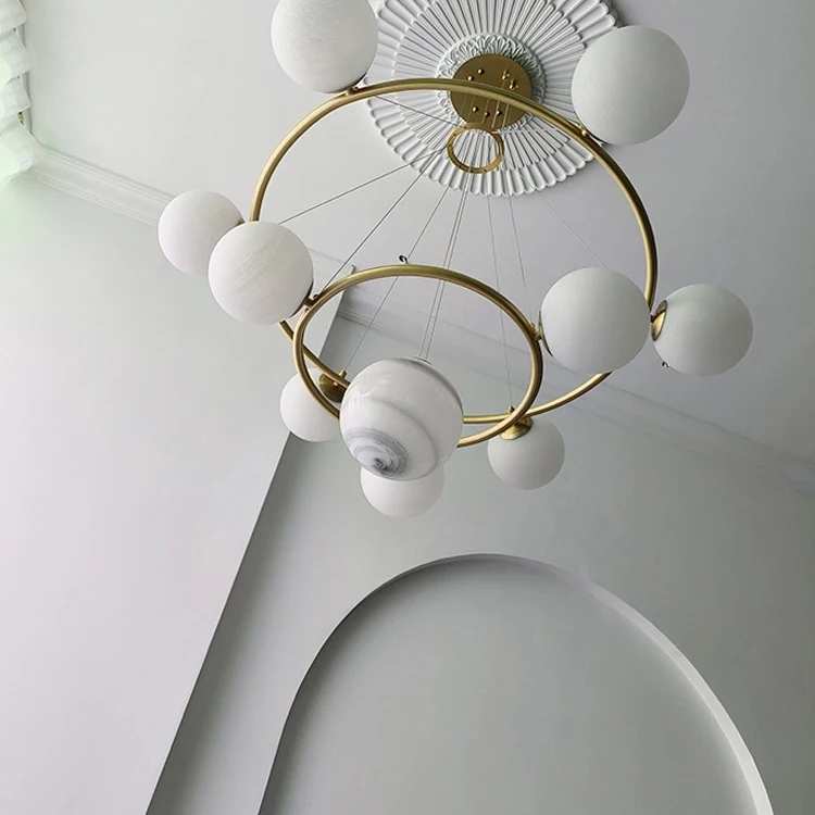 Nordic Modern Chandelier for High Ceiling Gold Glass Ball Hanging Lamps Living Room Led Luxury Chandelier Pendant Lights