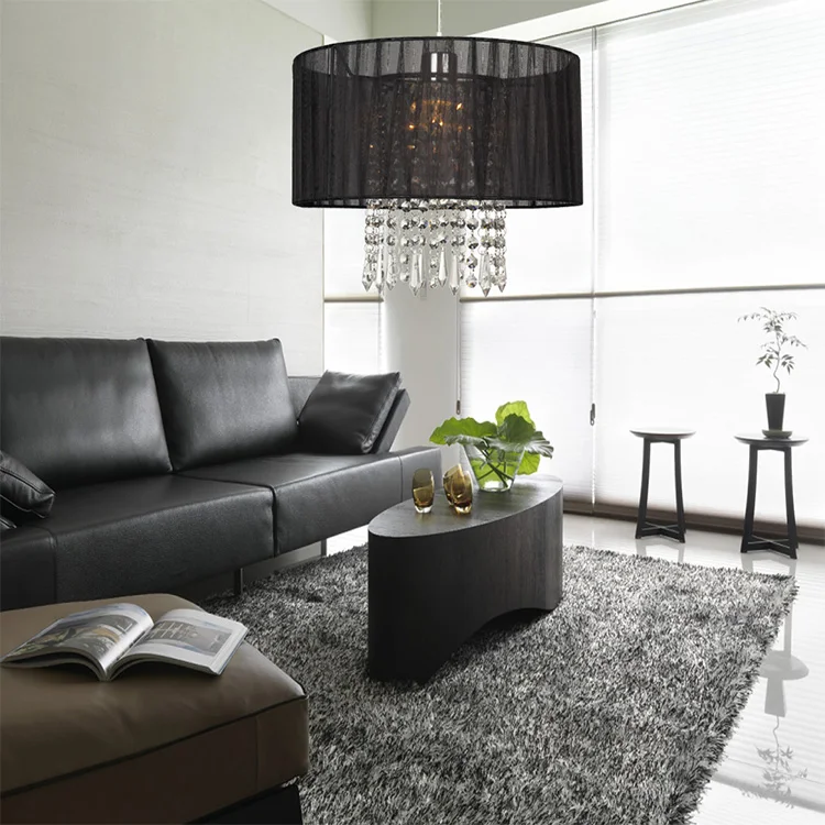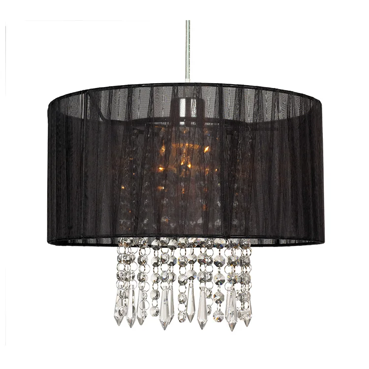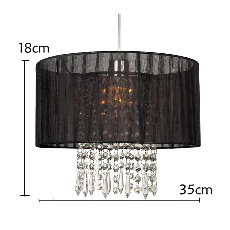 Small Black Crystal Led Circle Ceiling Light Fixtures Silk Round Pendant Light Modern for Kitchen Island Bedroom Decor Lighting