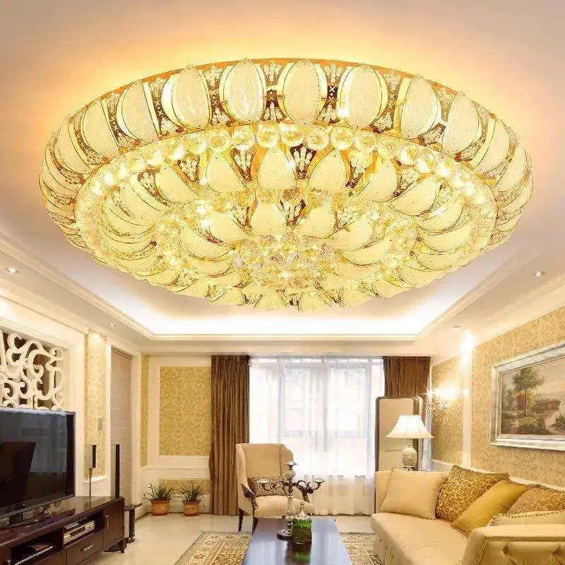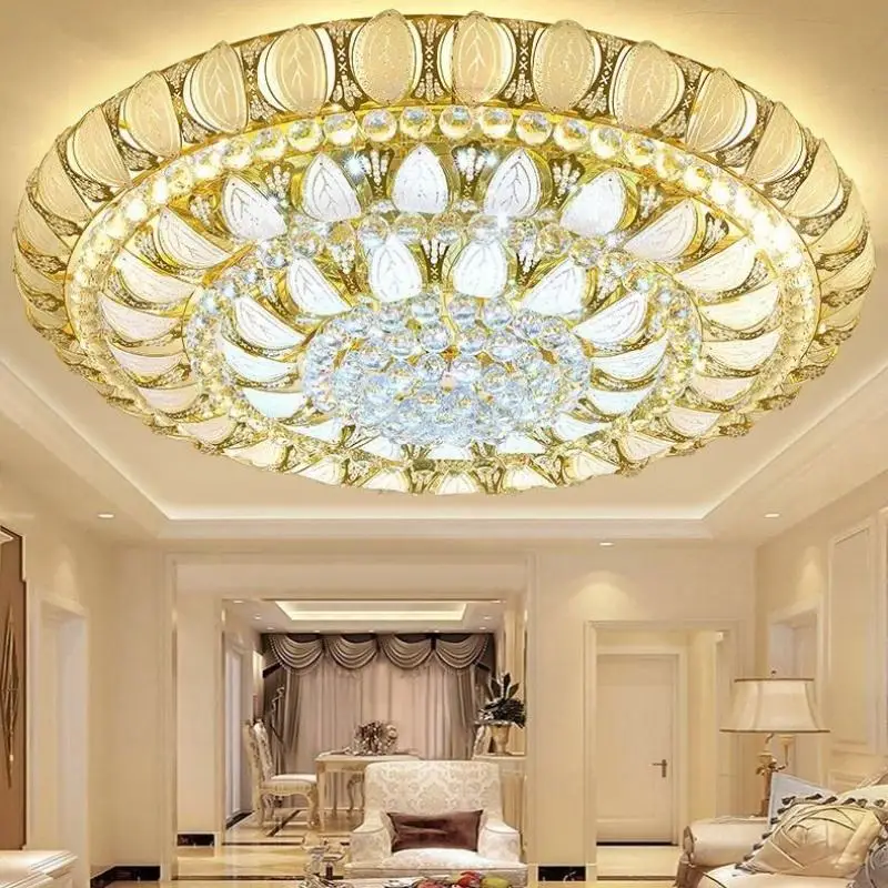 Round LED Crystal Ceiling Lights Living Room Luxury Design Gold Fixtures Ceiling Light