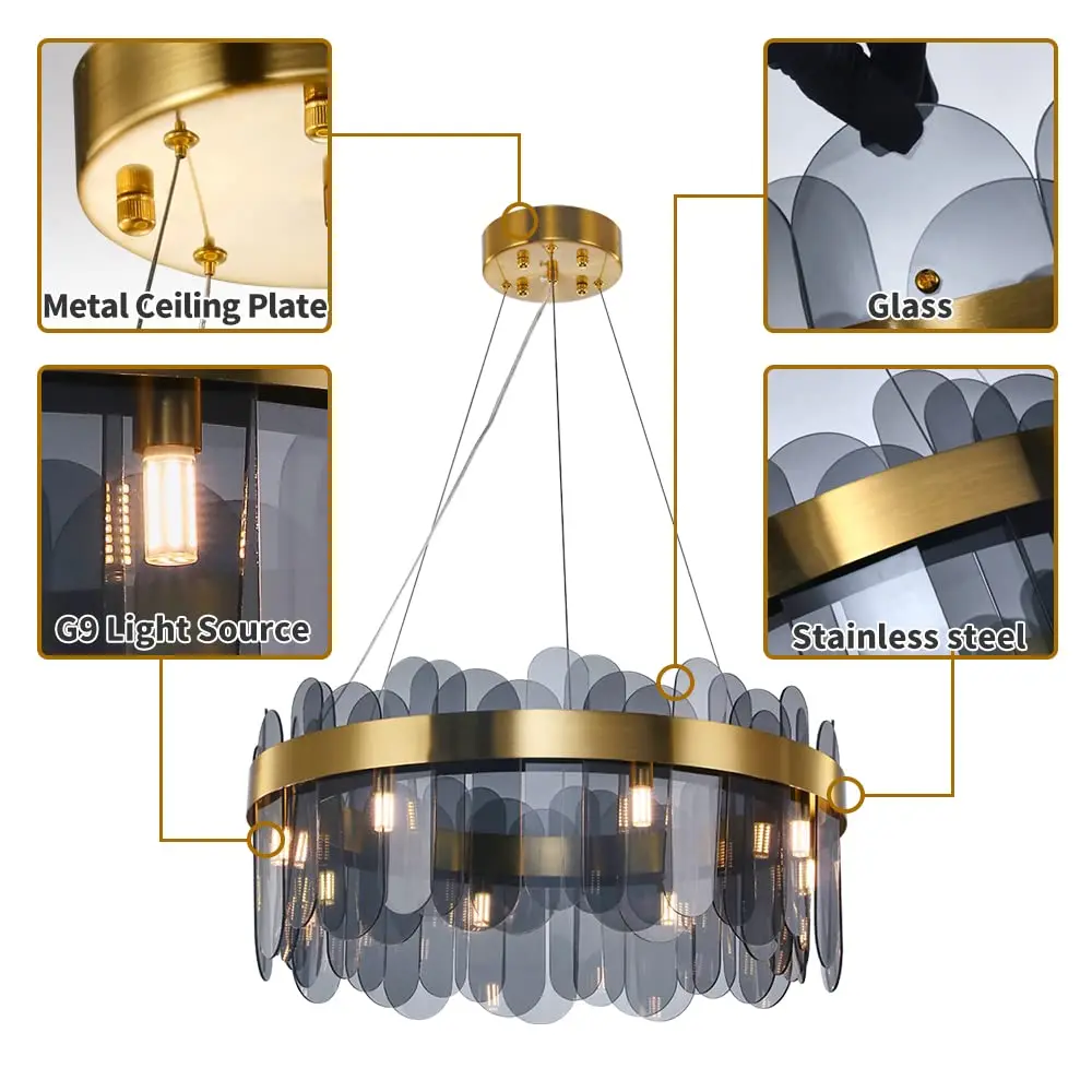 MEIYUN Interior Decor Modern Luxury Crystal Chandelier Lighting Gold