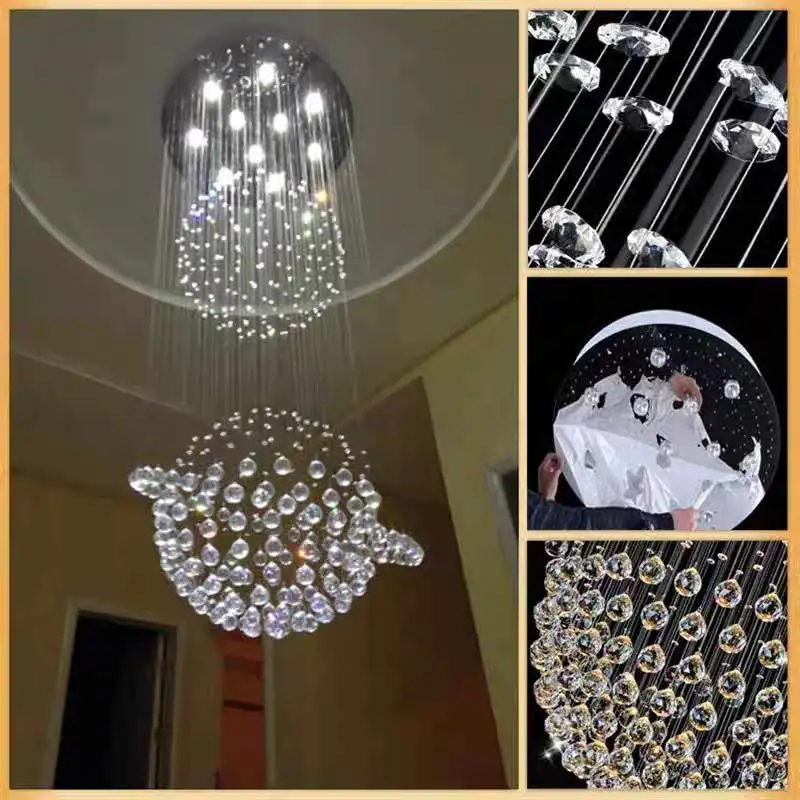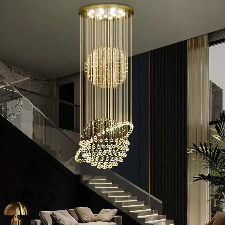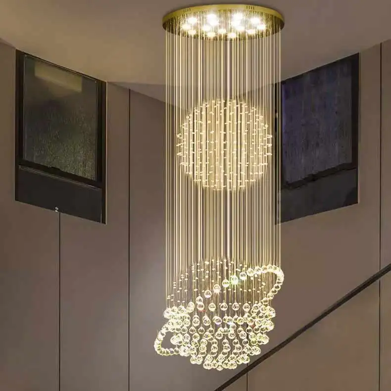 Modern Luxury High Ceiling Decorative LED Crystal K9 Rain Drop Chandeliers Stair Pendant Lights