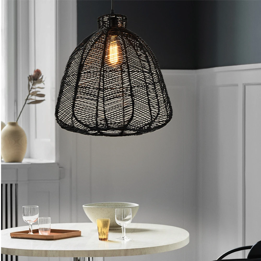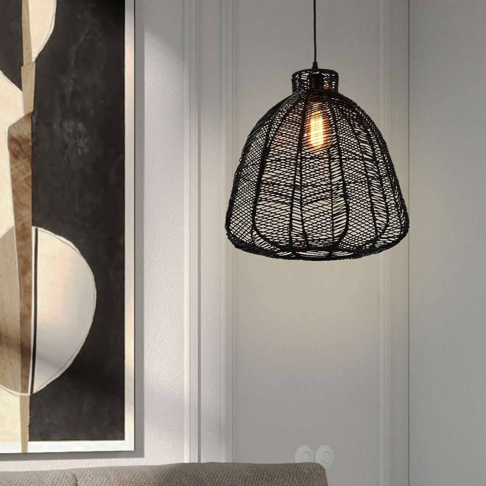 Wabi-Sabi Handcrafted Tassel Macrame Woven Pendant Light Twine Braid Rattan Led Rattan Chandelier