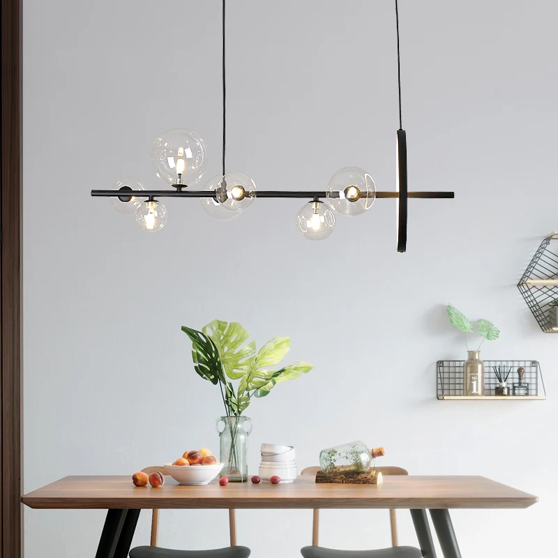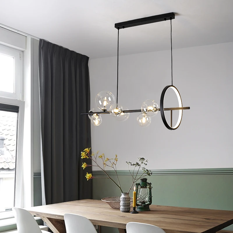 Nordic LED Chandelier Transparent Glass Ball Restaurant Bar Cafe Office Chandelier Ring