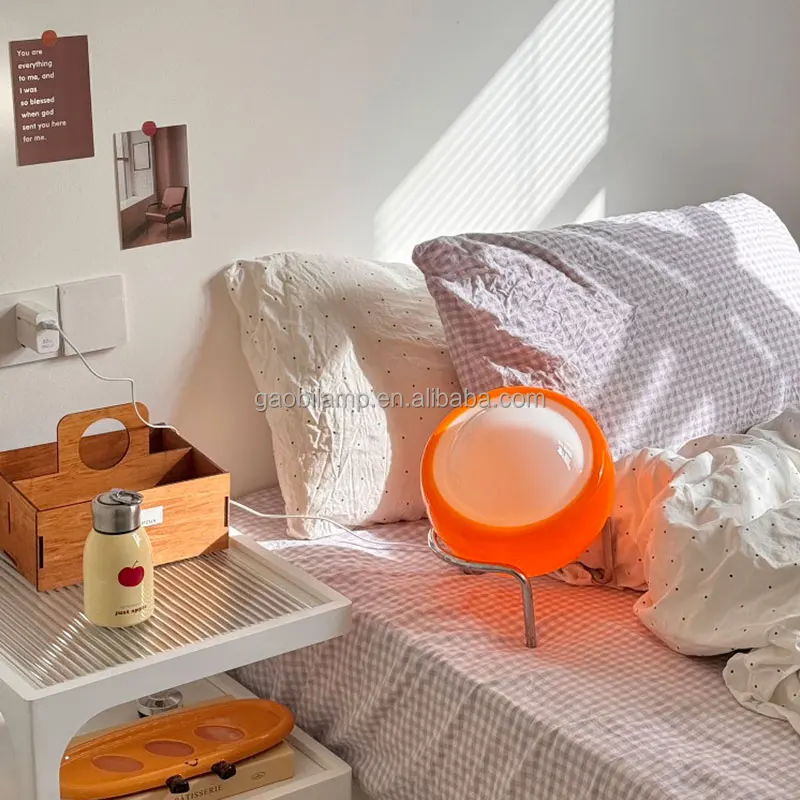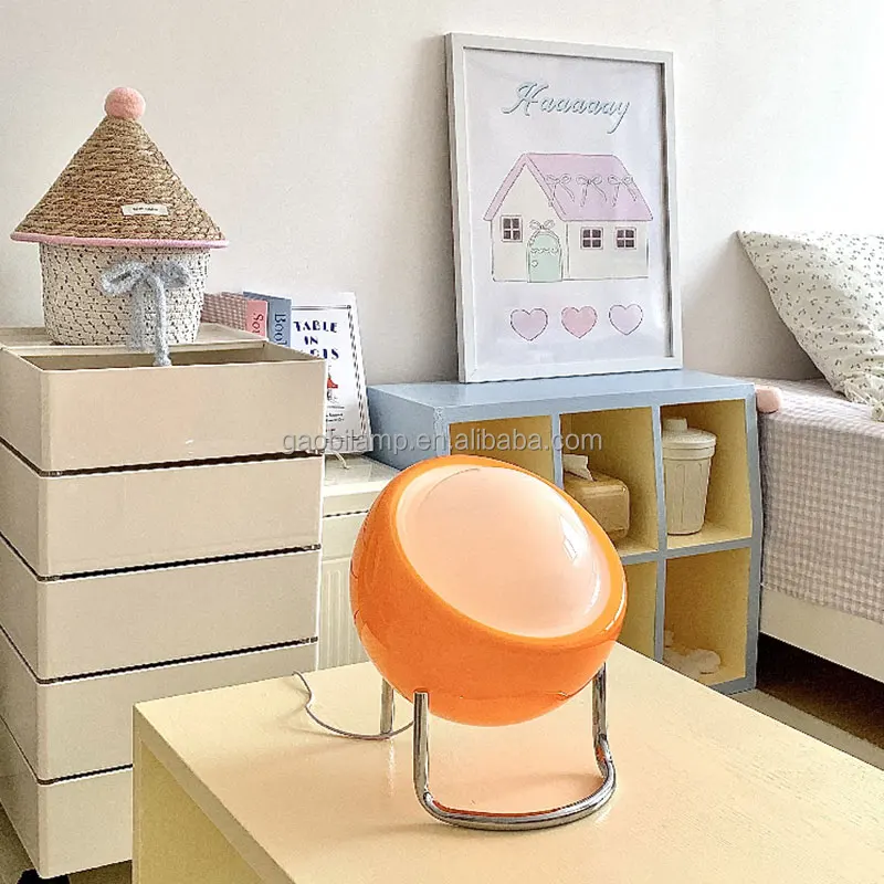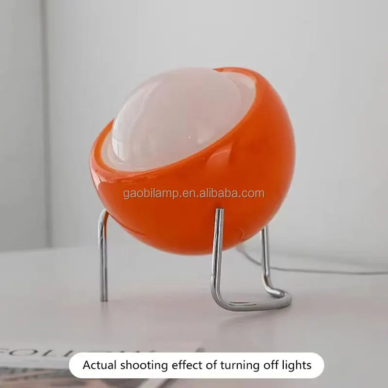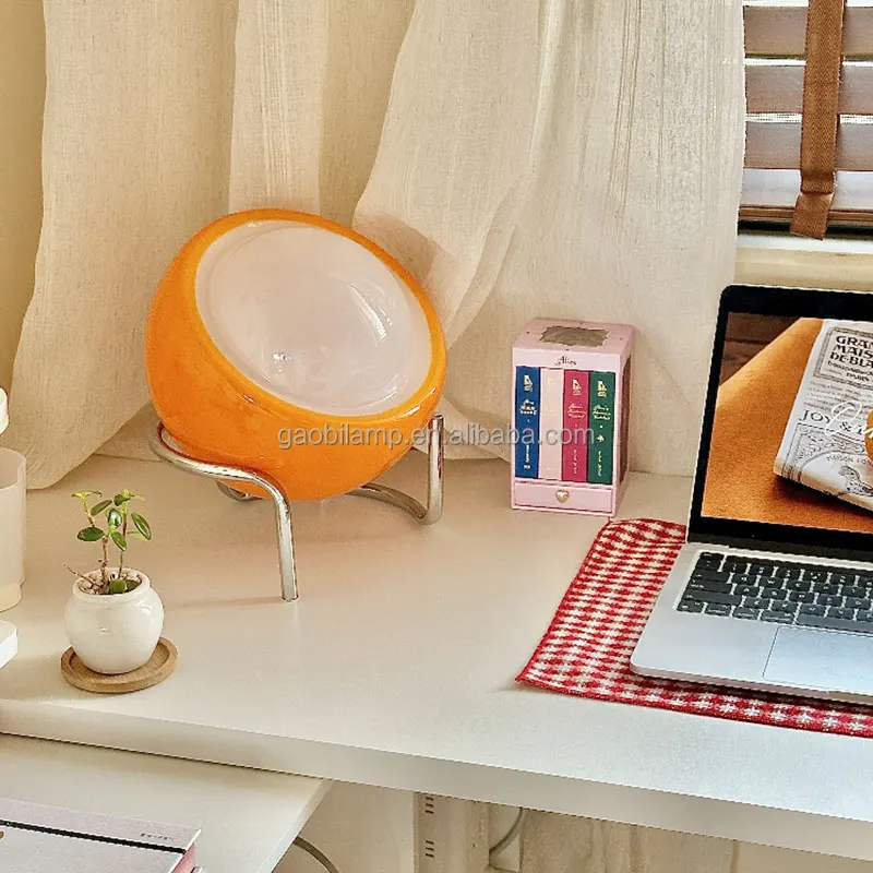Vintage Orange Egg Shape LED Sphere Glass Table Lamp Modern Home Decor with Iron Body and Metal Battery Operated