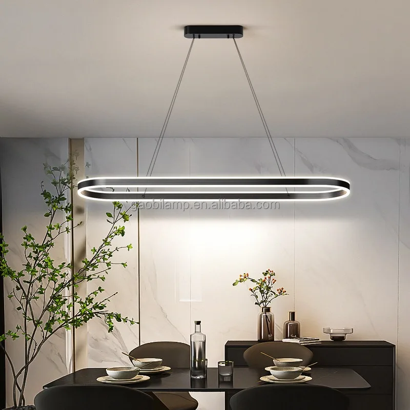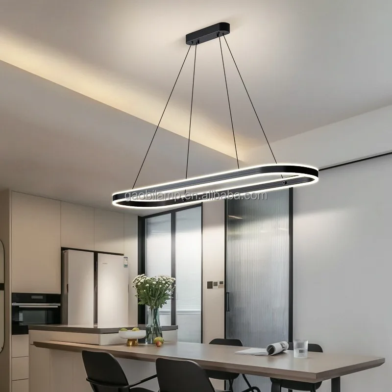 Modern Minimalist LED Chandelier Pendant Lamp Rectangle Bar Hanging Light Fixture for Kitchen Dining and Home Decor