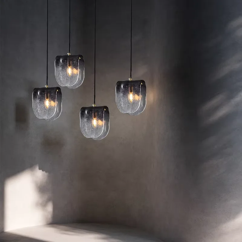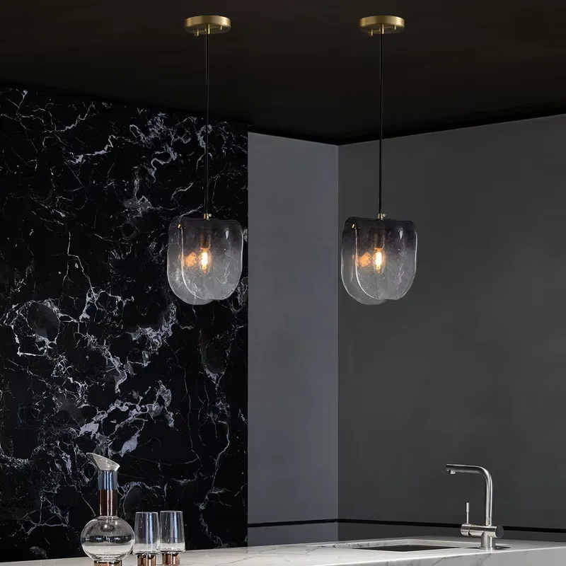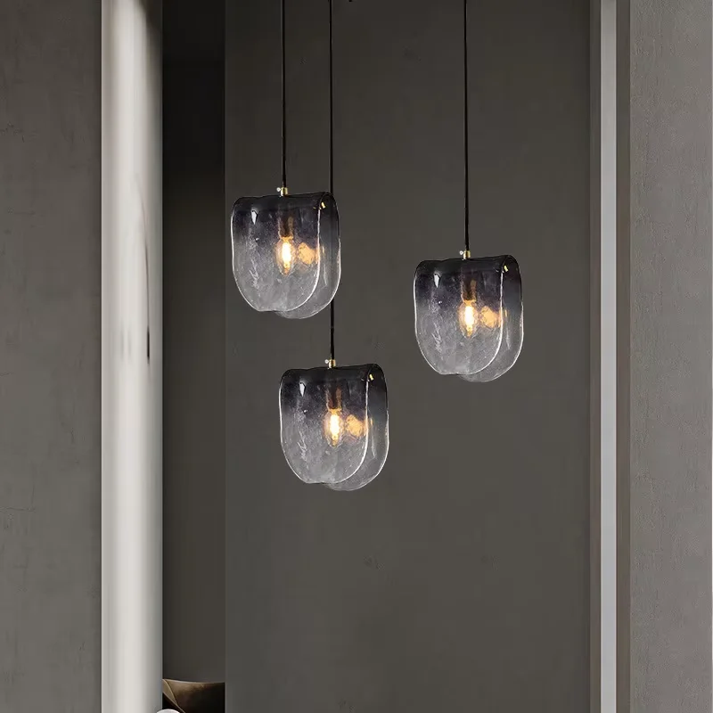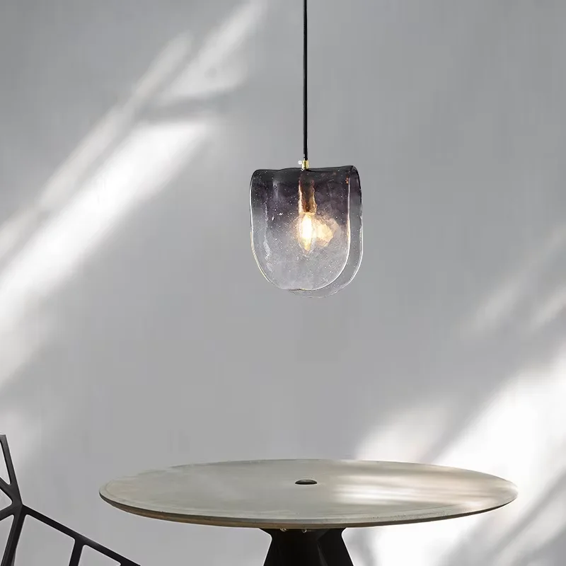 Nordic Style Smoke Grey Glass Shell Shaped LED Chandelier Adjustable Height for Restaurant Bar Bedroom