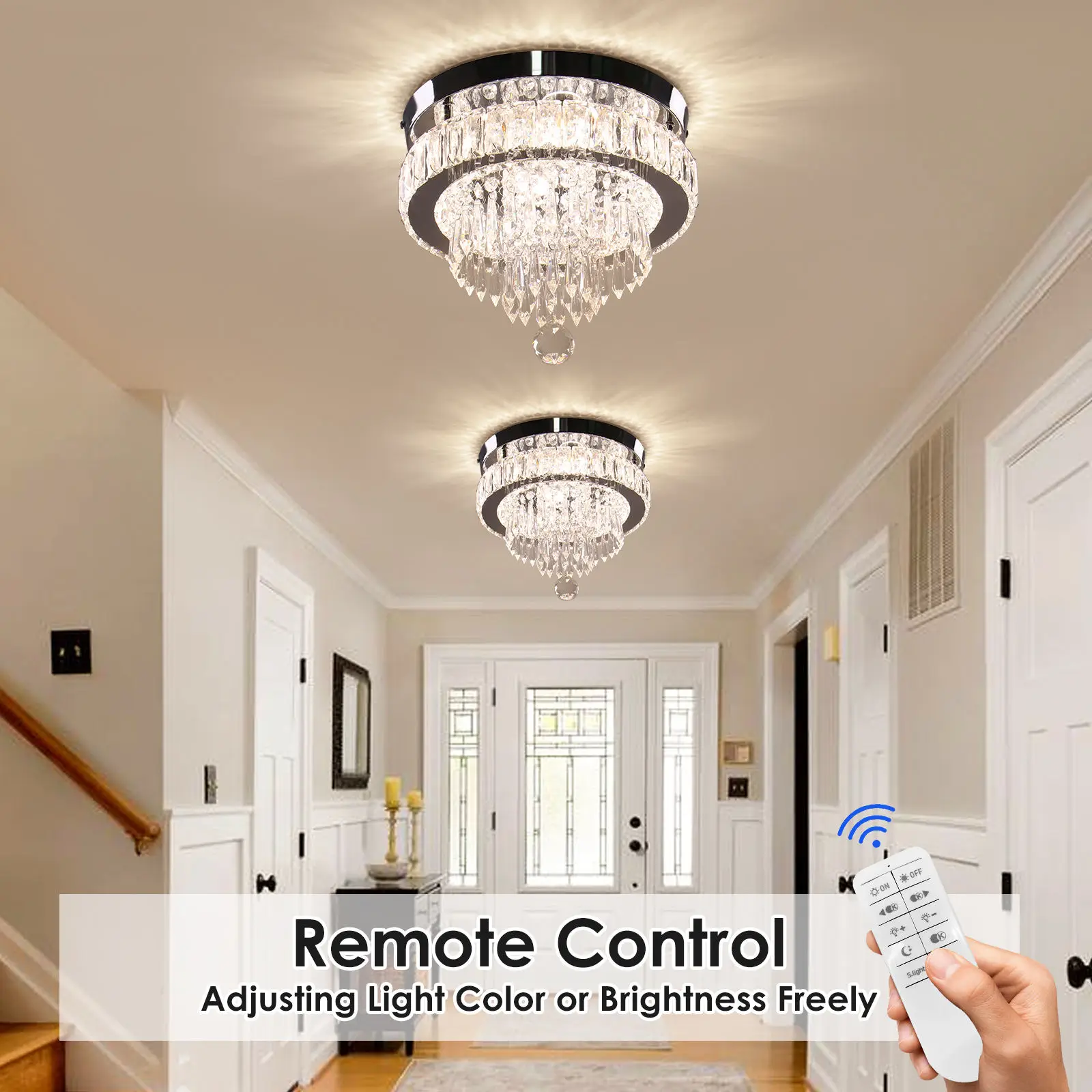 Dimmable Luxury LED Crystal Lighting Led Double-Layer Circular Ceiling Light for Living Room Bedroom