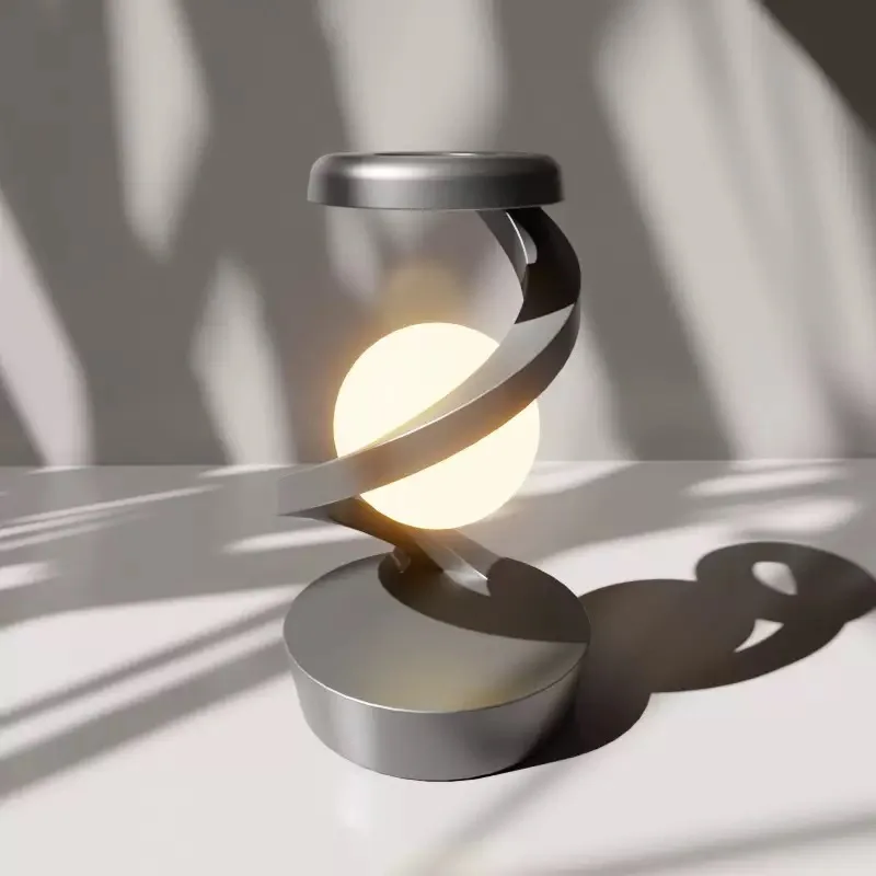 Rotating Suspended Wireless Charging LED Desk Lamp RGB Atmosphere Night Light Creative Bedside Lamp for Reading Room Mobile