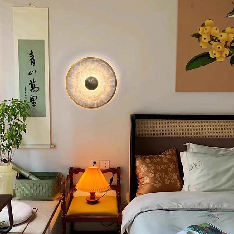 Copper Wall Sconce Lamp Background Natural Marble Indoor Wall Lamps for Home Hotel Bedroom