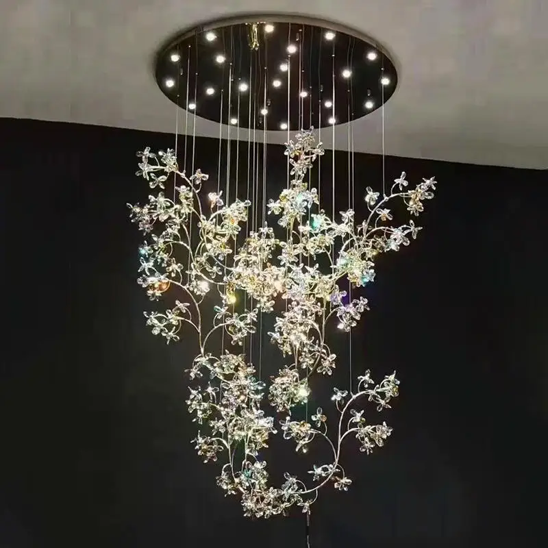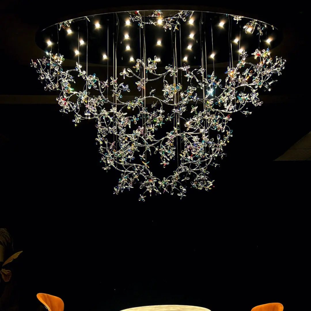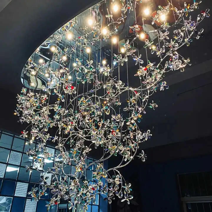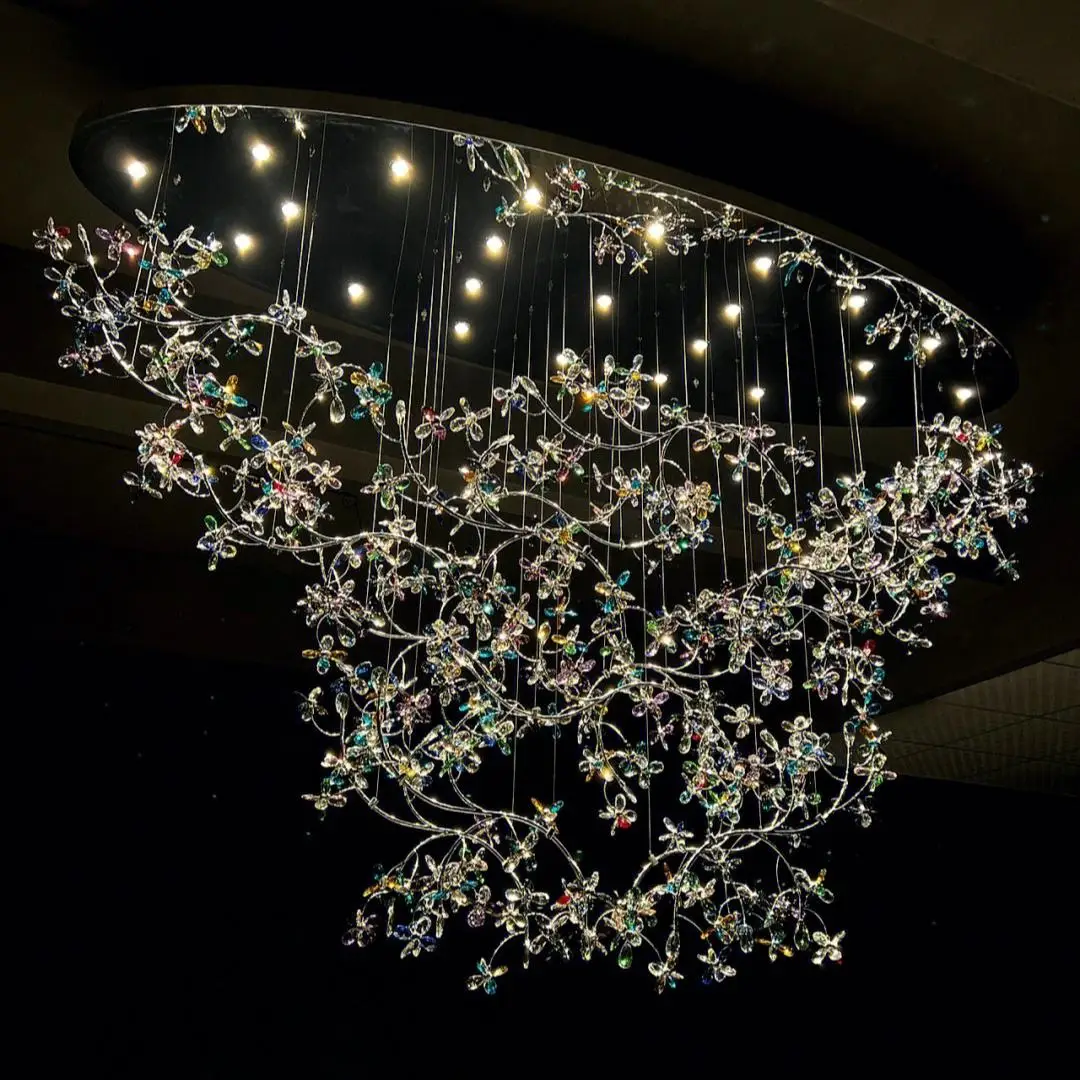 Professional Custom Indoor Project Luxury Hanging Light Colorful Crystal Flower Chandelier Villa