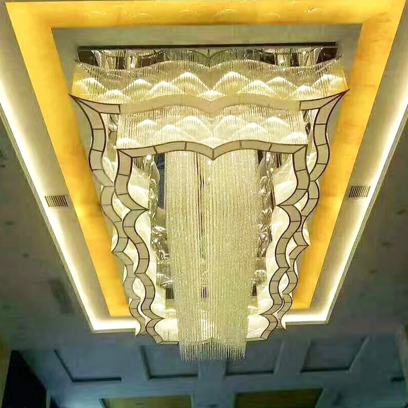 Customized Modern Wedding Hall Crystal Chandelier Fancy Ceiling Light for High Ceilings Shopping Mall Lobby