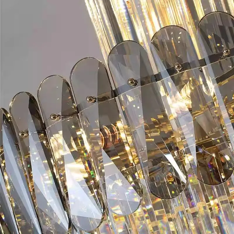 Modern Luxury Crystal Chandelier Simple Style LED Fixture for Hotel Long Living Room Iron Professional Project Installation