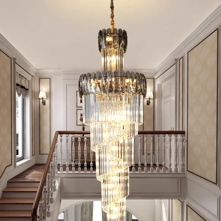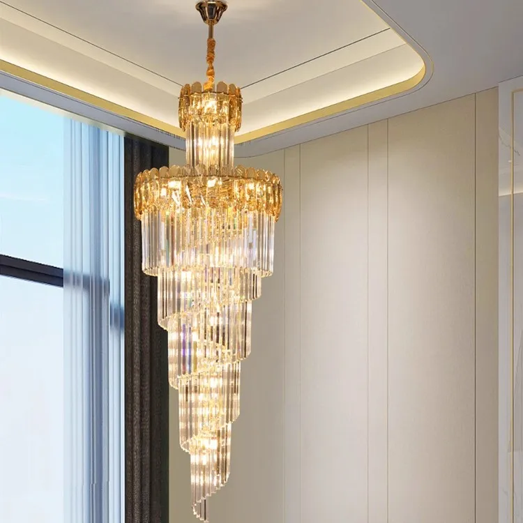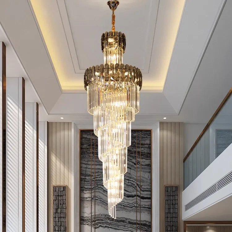 Zeal Lighting Long Stairwell Hanging Pendant Light Staircase Villa Duplex Stair High Ceiling Crystal Chandelier