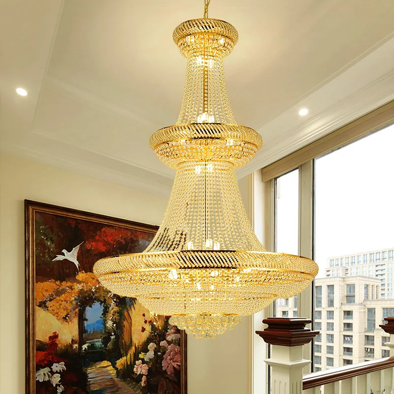 Zeal Lighting Hotel Lobby Hall Decorative Large Hanging Light Customized Long Gold Crystal Elegant Chandelier