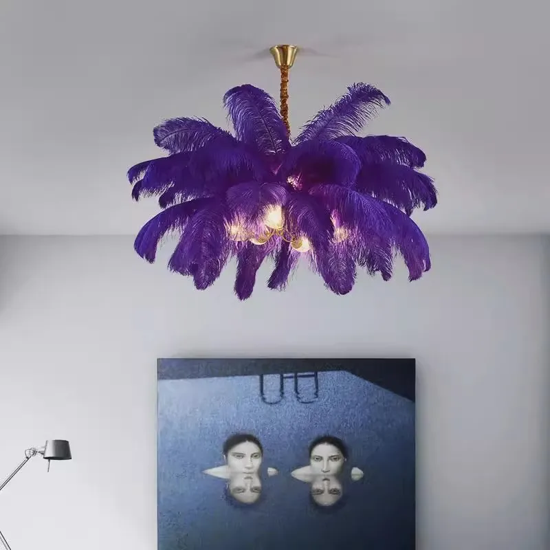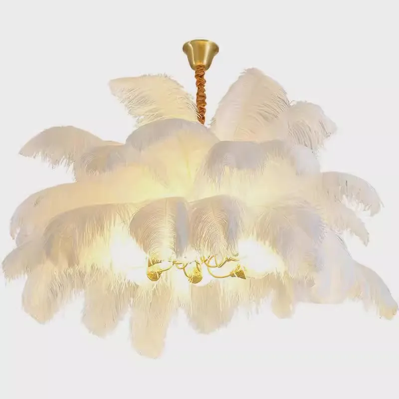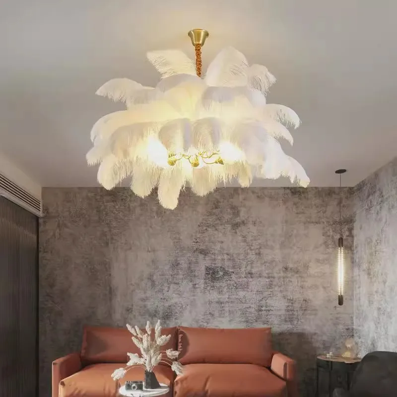Modern Nordic Feather Chandelier Adjustable Height Hanging Luxury Indoor Lighting Living Room Bedroom Hotel Villa Ceiling