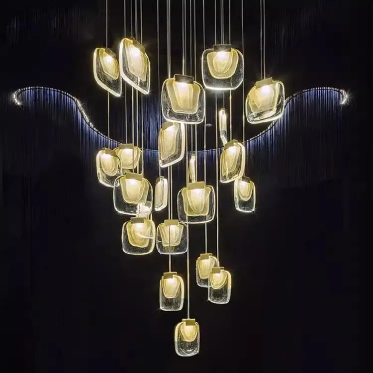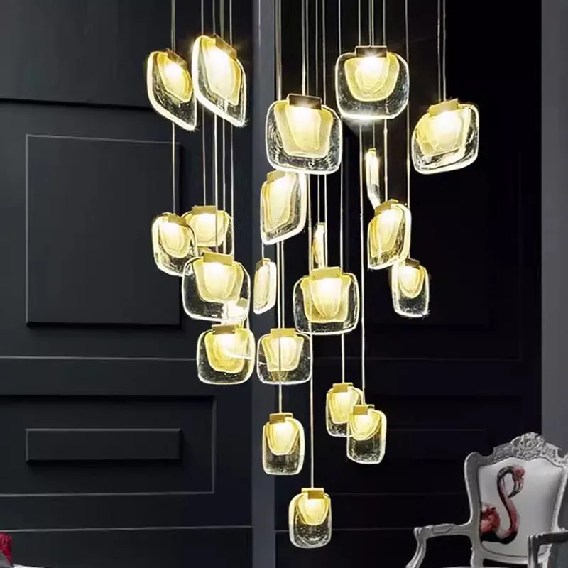 Zeal Lighting Long Stairwell Hanging Pendant Light Staircase Villa Duplex Stair High Ceiling Crystal Chandelier