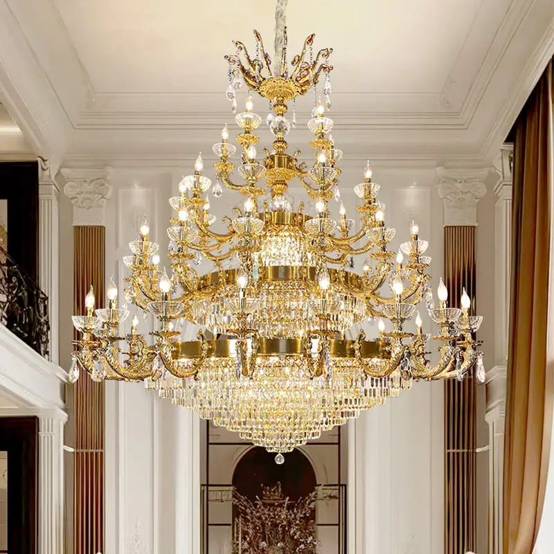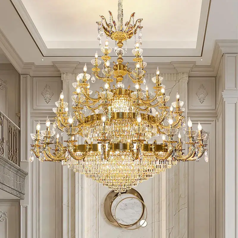 Gold Luxury Pendant Light Villa Retest Building Living Room Large Chandeliers for High Ceilings